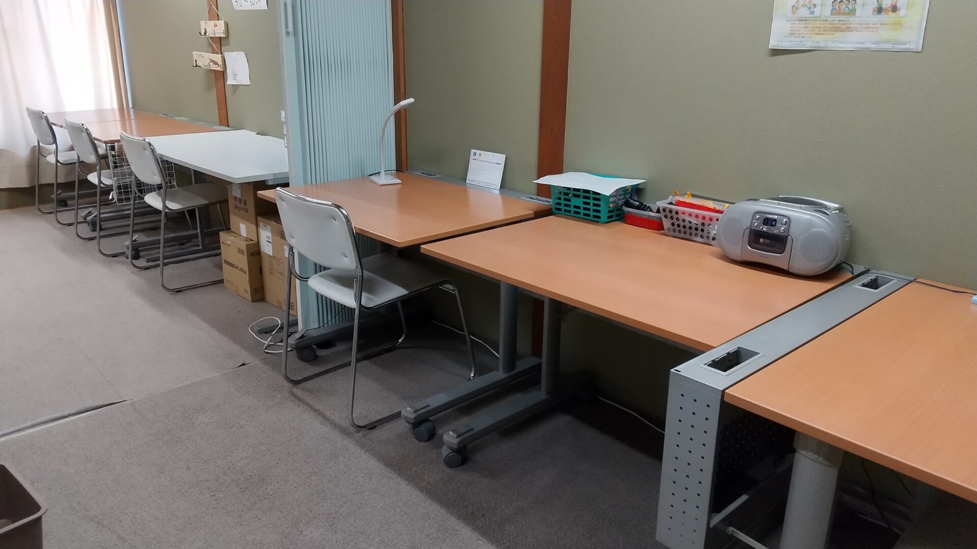 いざという時の災害用ヘルメットを毎日、職員や利用者が通る廊下に設置してあります。