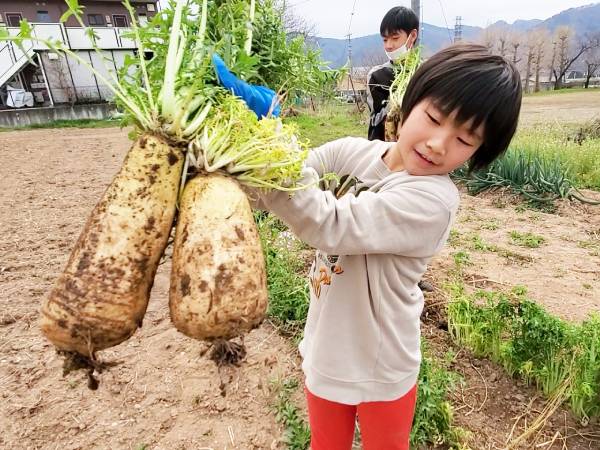 就労支援事業所のみらい望ファームで坂城町特産のねずみ大根の収穫です。